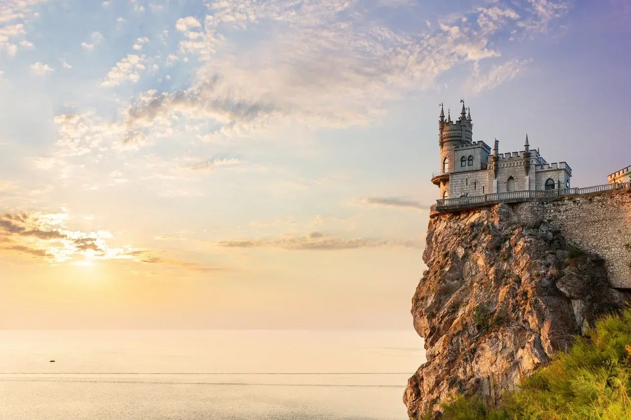 Ласточкино Гнездо — одна из самых известных достопримечательностей Крыма, расположенная на живописной скале в районе горы Ай-Тодор. Этот удивительный замок, построенный в 1912 году в стиле средневековой готики, поражает своей архитектурной элегантностью и уникальным расположением. Он словно висит на обрыве, с видом на Черное море, что придает ему невероятную атмосферу романтики и загадочности.